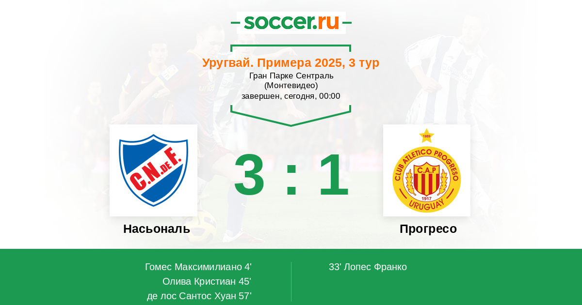 Протокол матча Насьональ против Прогресо