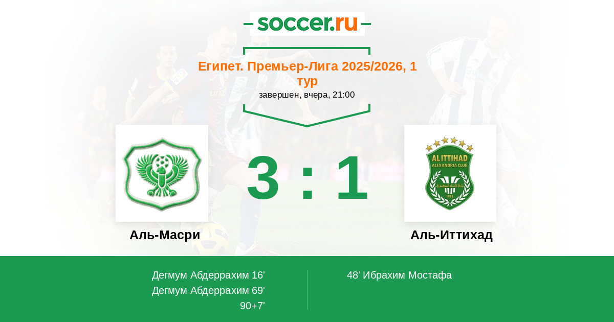Протокол матча Аль-Масри против Аль-Иттихад