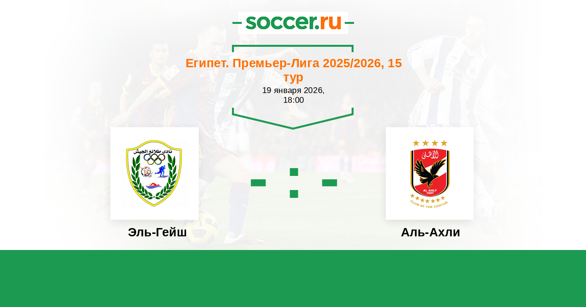 Египет. Премьер-Лига 16.01.2018 Эль-Гейш Логотип футбольный клуб Эль-Гейш (Каир) 0:2 Логотип футбольный клуб Аль-Ахли (Каир) Аль-Ахли