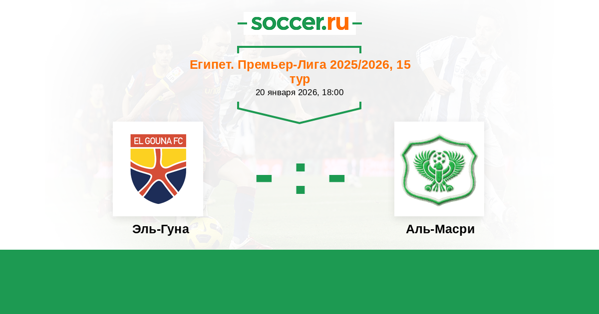 Египет. Премьер-Лига 17.12.2020 Эль-Гуна Логотип футбольный клуб Эль-Гуна 1:1 Логотип футбольный клуб Аль-Масри (Порт-Саид) Аль-Масри