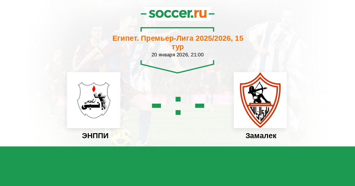 Египет. Премьер-Лига 26.10.2021 ЭНППИ Логотип футбольный клуб ЭНППИ (Каир) 0:2 Логотип футбольный клуб Замалек (Каир) Замалек