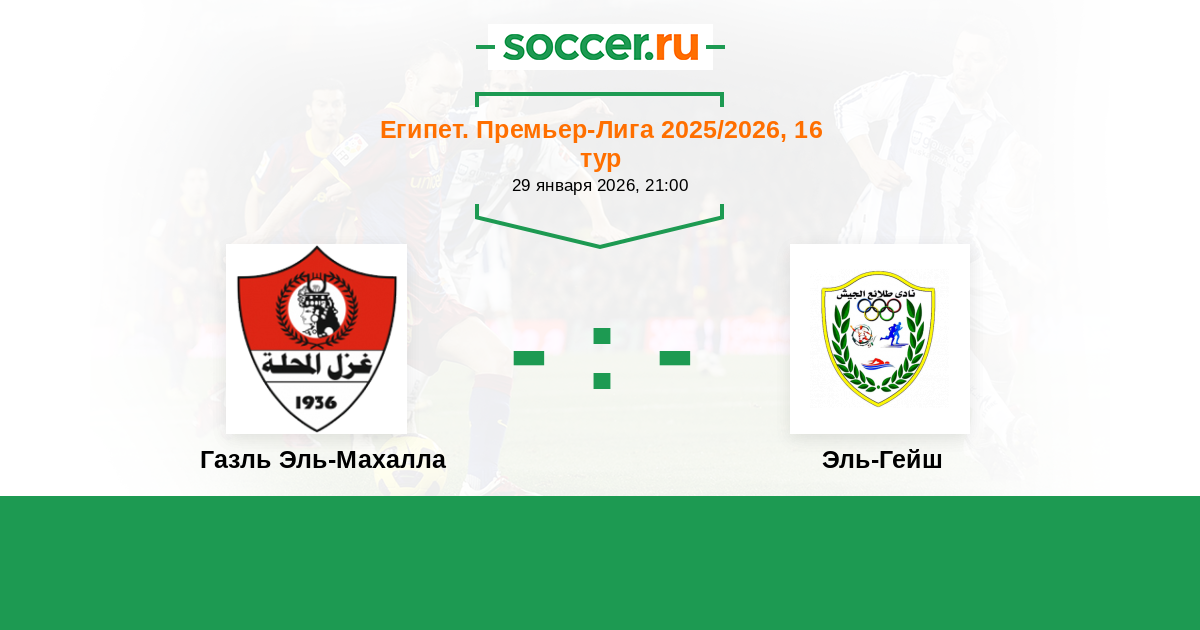 Египет. Премьер-Лига 25.12.2020 Газль Эль-Махалла Логотип футбольный клуб Газль Эль-Махалла 2:1 Логотип футбольный клуб Эль-Гейш (Каир) Эль-Гейш