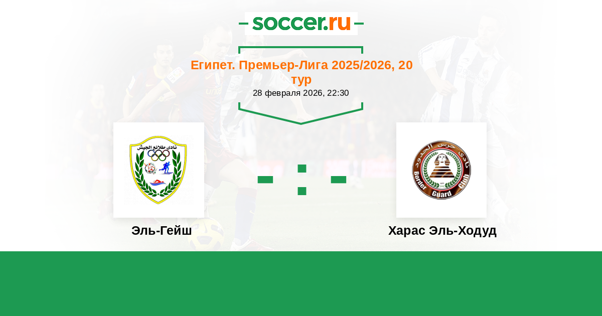 Египет. Премьер-Лига 19.02.2014 Харас Эль-Ходуд Логотип футбольный клуб Харас Эль-Ходуд (Александрия) 1:0 Логотип футбольный клуб Эль-Гейш (Каир) Эль-Гейш