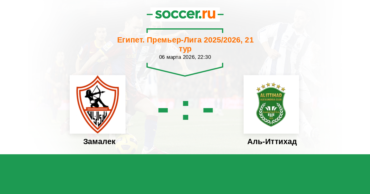 Египет. Премьер-Лига 19.04.2022 Аль-Иттихад Логотип футбольный клуб Аль-Иттихад (Александрия) 0:2 Логотип футбольный клуб Замалек (Каир) Замалек