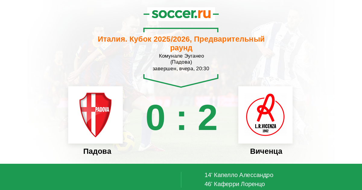 Протокол матча Падова против Виченца