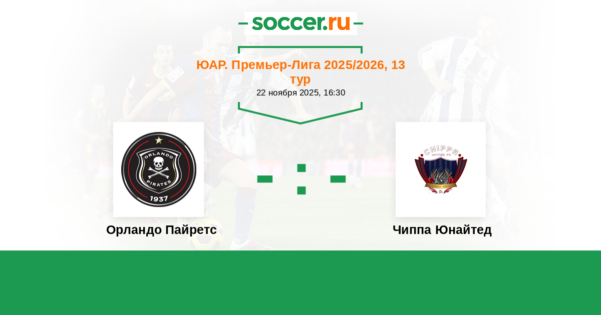 ЮАР. Премьер-Лига 18.09.2024 Орландо Пайретс Логотип футбольный клуб Орландо Пайретс (Йоханнесбург) 2:1 Логотип футбольный клуб Чиппа Юнайтед (Порт-Элизабет) Чиппа Юнайтед