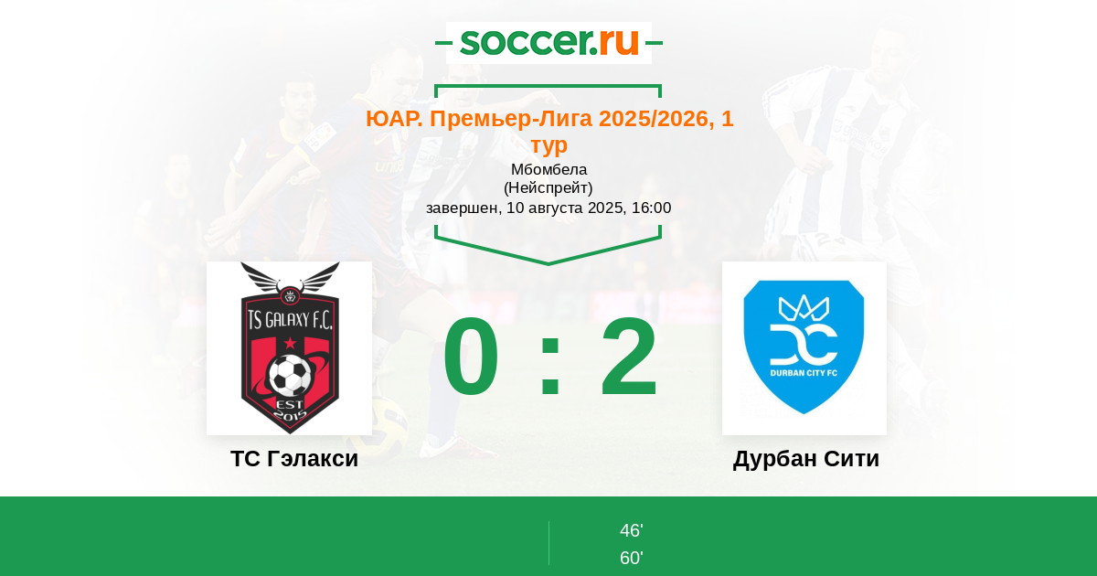 Протокол матча ТС Гэлакси против Дурбан Сити