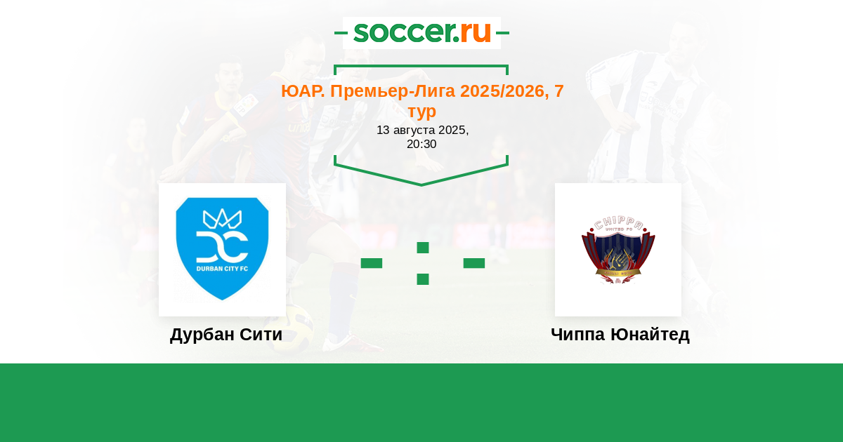 Протокол матча Дурбан Сити против Чиппа Юнайтед