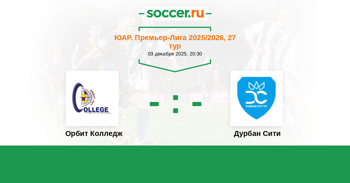 Протокол матча Орбит Колледж против Дурбан Сити