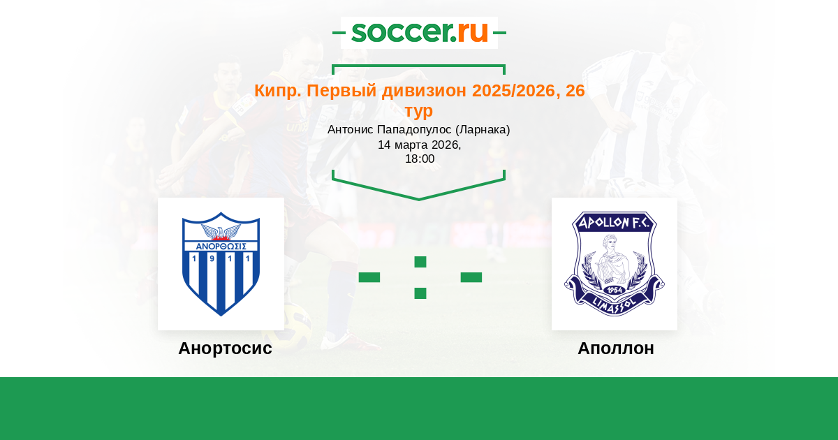 Кипр. Первый Дивизион 26.02.2022 Аполлон Логотип футбольный клуб Аполлон (Лимассол) 2:2 Логотип футбольный клуб Анортосис (Ларнака) Анортосис