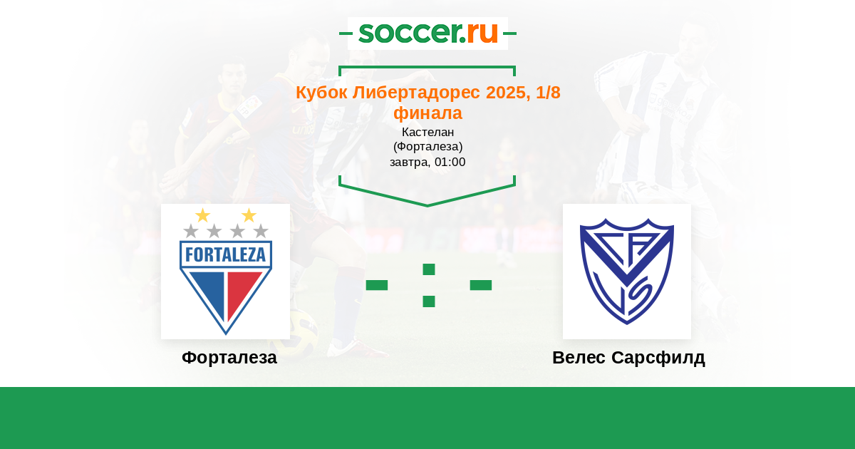 Форталеза - Велес Сарсфилд ! Групповой этап команды прошли не плохо со средней результативностью , причём оборона у команд обещает желать лучшего . Предположу по крайней мере обмен голами . ОЗ .