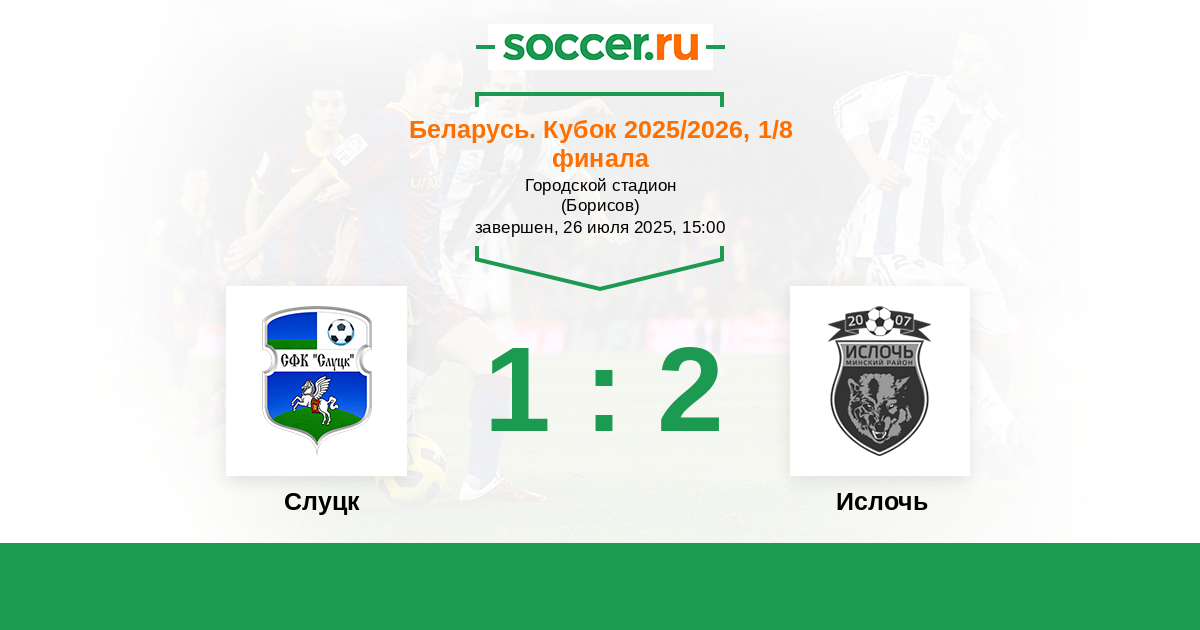 Беларусь. Высшая лига 02.07.2016 Слуцк Логотип футбольный клуб Слуцк 2:2 Логотип футбольный клуб Ислочь (Минск) Ислочь