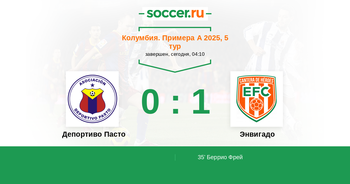 35' (0:1) Беррио Фрей (31) (Уртадо Уилльям (18))