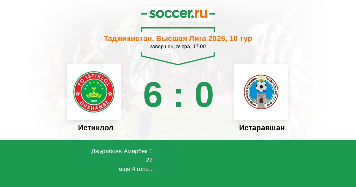 Протокол матча Истиклол против Истаравшан