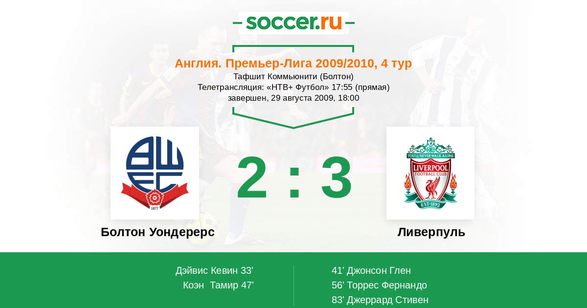 Протокол матча Болтон Уондерерс против Ливерпуль