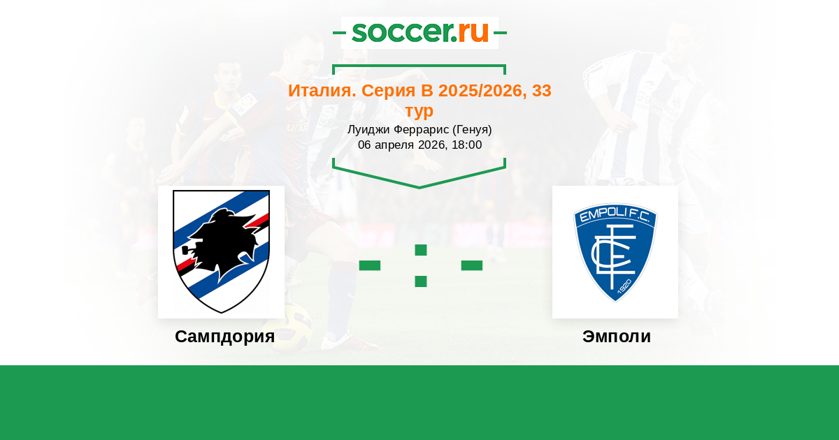 Италия. Серия А 19.02.2022 Сампдория Логотип футбольный клуб Сампдория (Генуя) 2:0 Логотип футбольный клуб Эмполи Эмполи