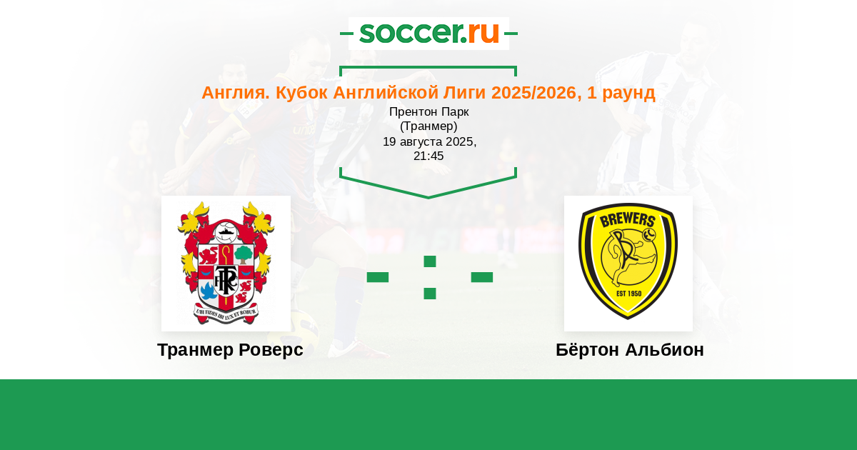 Протокол матча Транмер Роверс против Бёртон Альбион
