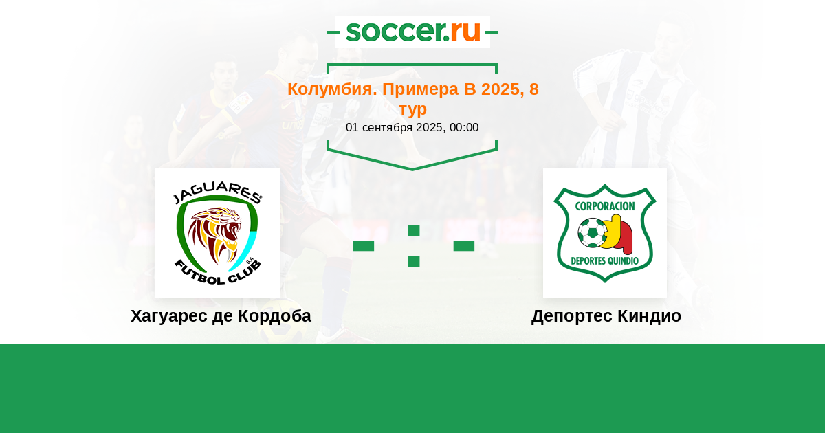 Протокол матча Хагуарес де Кордоба против Депортес Киндио