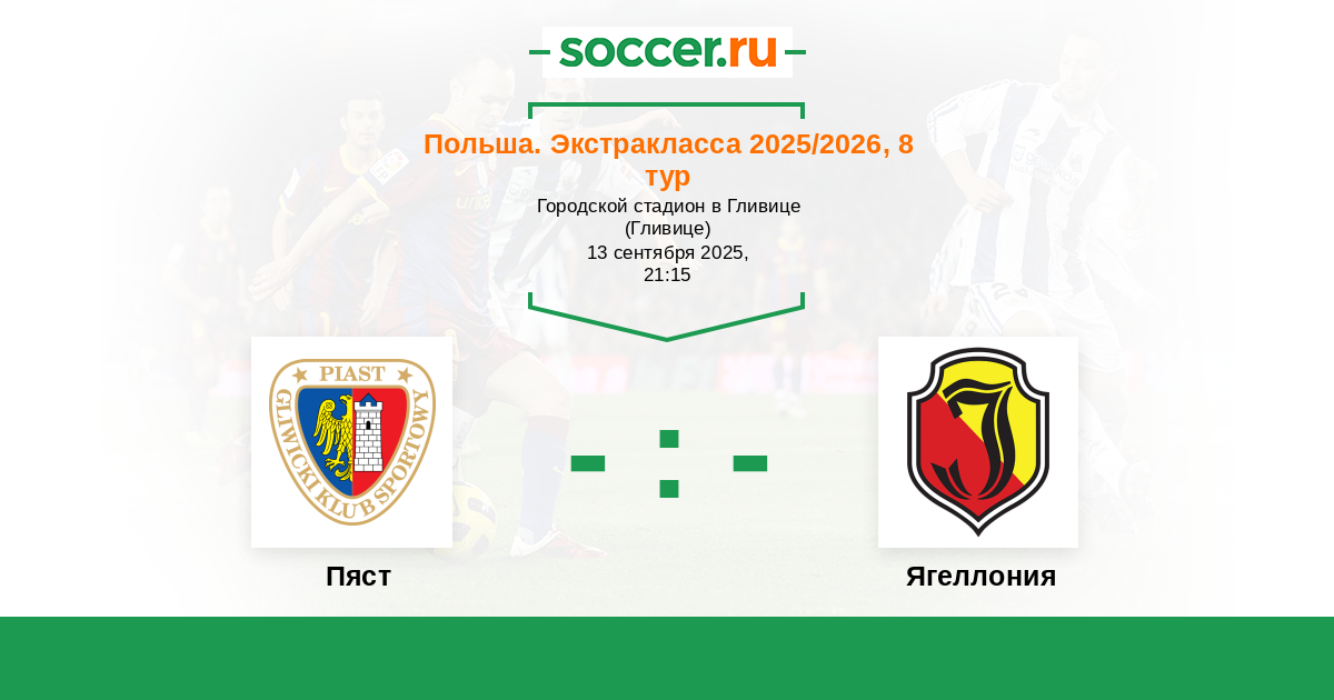 Протокол матча Пяст против Ягеллония
