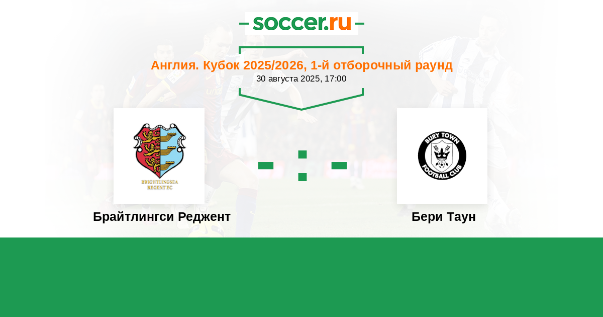 Англия. Кубок 22.09.2020 Бери Таун Логотип футбольный клуб Бери Таун (Бери-Сент-Эдмендс) 2:1 Логотип футбольный клуб Брайтлингси Реджент Брайтлингси Реджент