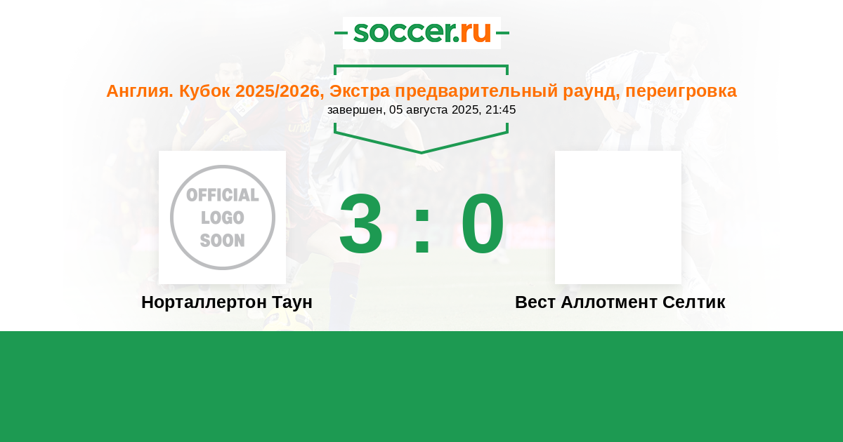 История матча Норталлертон Таун против Вест Аллотмент Селтик