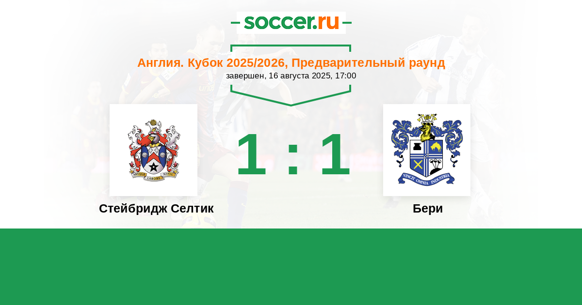 История матча Стейбридж Селтик против Бери