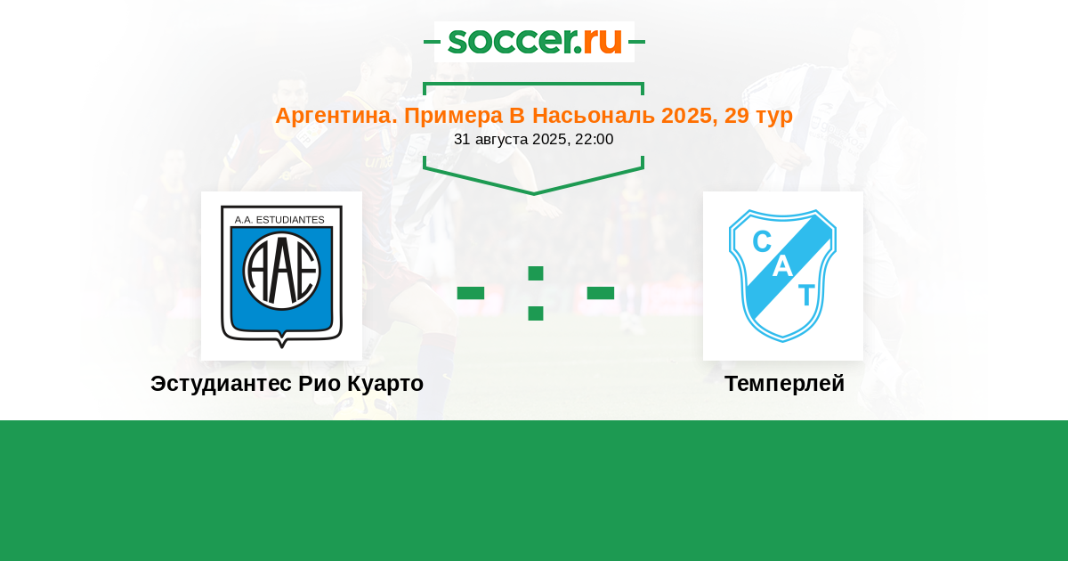 Протокол матча Эстудиантес Рио Куарто против Темперлей