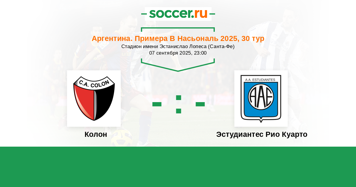 Протокол матча Колон против Эстудиантес Рио Куарто