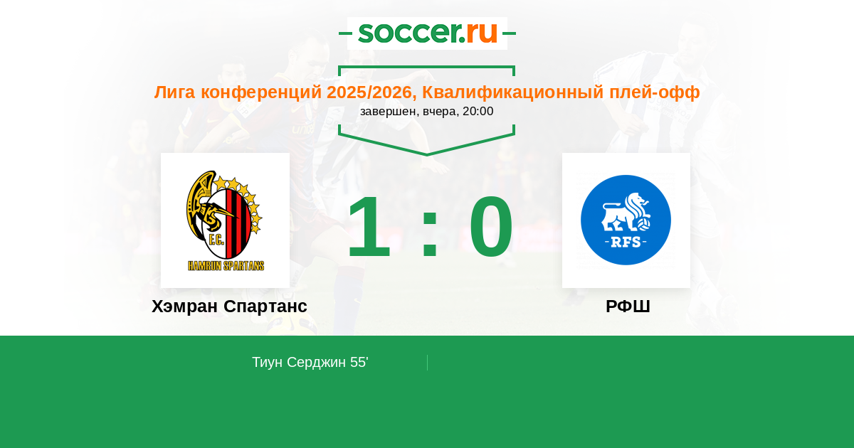Протокол матча Хэмран Спартанс против РФШ