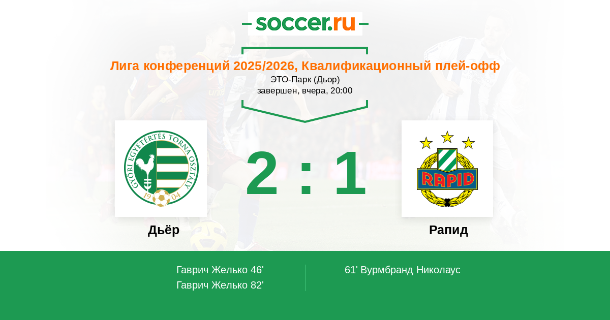 Протокол матча Дьёр против Рапид