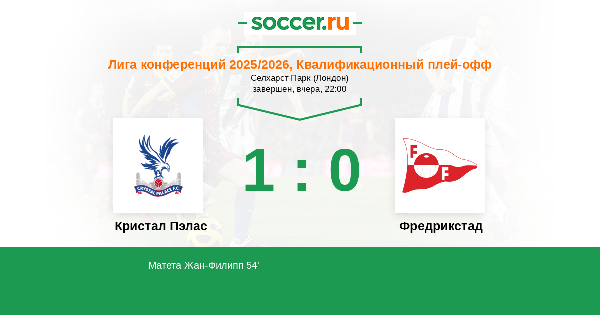 Протокол матча Кристал Пэлас против Фредрикстад