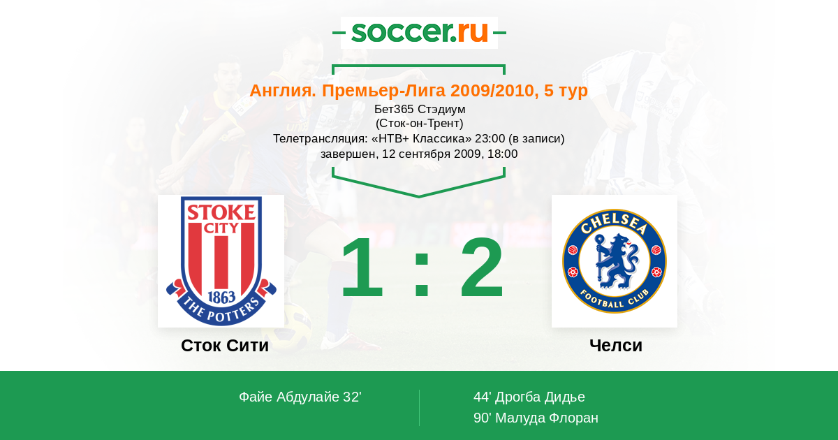 Протокол матча Сток Сити против Челси