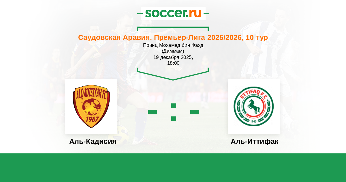 Саудовская Аравия. Премьер-Лига 10.04.2021 Аль-Иттифак Логотип футбольный клуб Аль-Иттифак (Даммам) 1:3 Логотип футбольный клуб Аль-Кадисия (Эль-Хубар) Аль-Кадисия