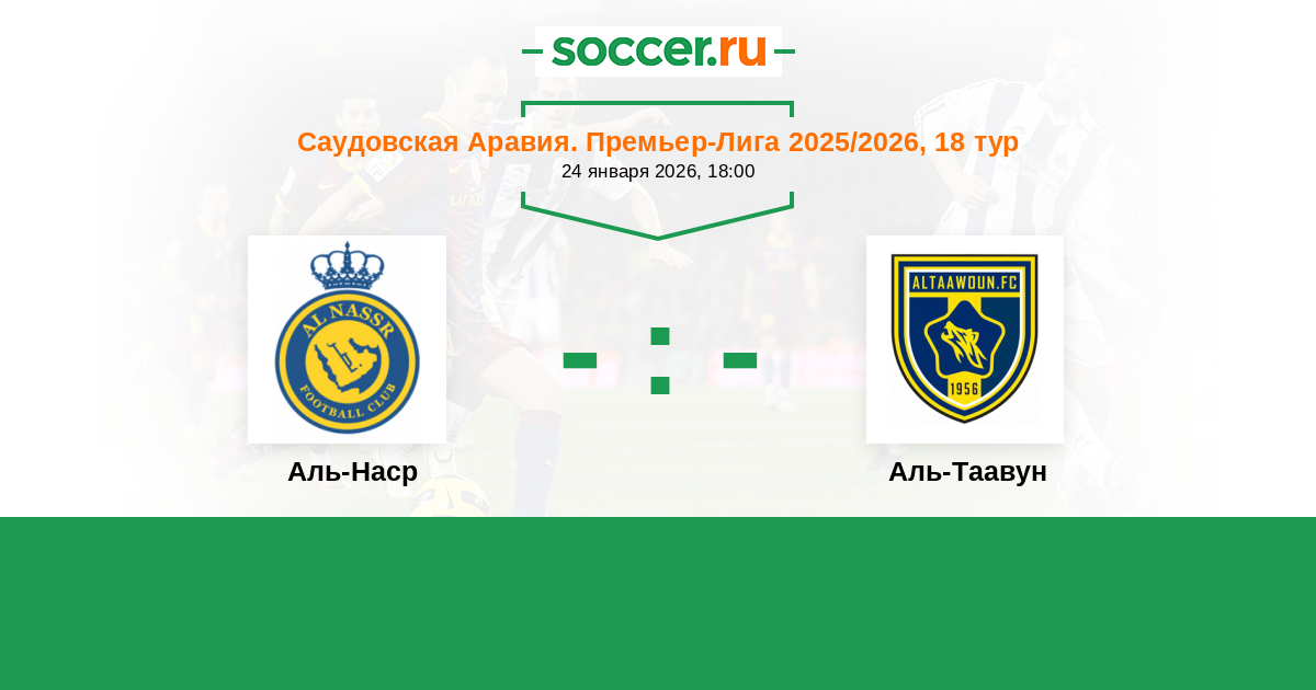 Саудовская Аравия. Премьер-Лига 17.01.2025 Аль-Таавун Логотип футбольный клуб Аль-Таавун (Бурайда) 1:1 Логотип футбольный клуб Аль-Наср (Эр-Рияд) Аль-Наср