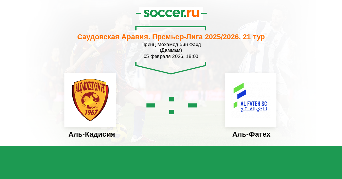 Саудовская Аравия. Премьер-Лига 01.02.2025 Аль-Фатех Логотип футбольный клуб Аль-Фатех (Эль-Хаса) 1:1 Логотип футбольный клуб Аль-Кадисия (Эль-Хубар) Аль-Кадисия