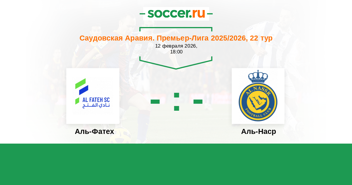 Саудовская Аравия. Премьер-Лига 18.10.2025 Аль-Наср Логотип футбольный клуб Аль-Наср (Эр-Рияд) 5:1 Логотип футбольный клуб Аль-Фатех (Эль-Хаса) Аль-Фатех