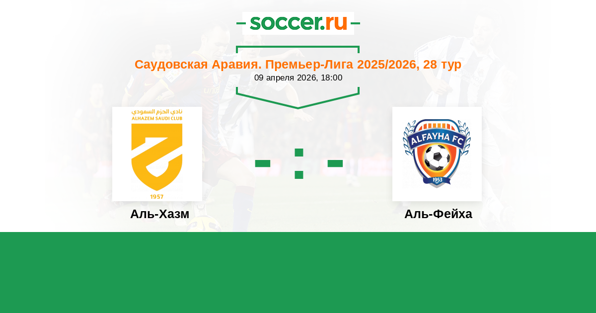 Саудовская Аравия. Премьер-Лига 25.12.2025 Аль-Фейха Логотип футбольный клуб Аль-Фейха (Аль-Маджмаа) 0:0 Логотип футбольный клуб Аль-Хазм (Эр-Расс) Аль-Хазм