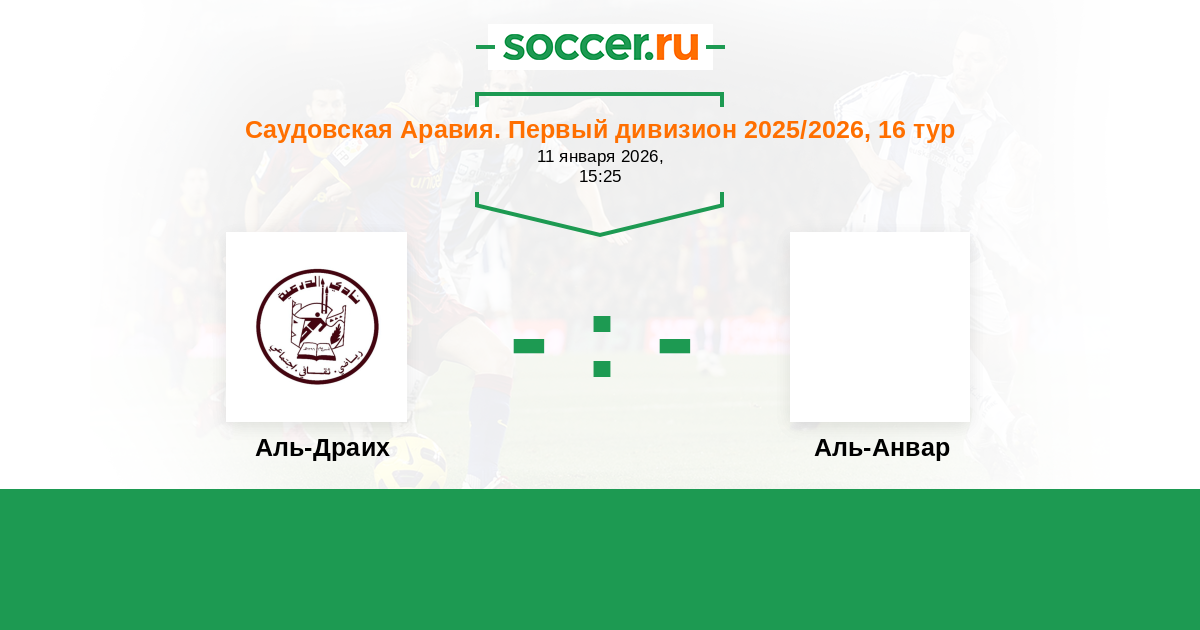 Хозяйская команда выглядит гораздо более сильным коллективом по сравнению с Аль-Анваром и имеет намного больше шансов на победу. С большой долей уверенности можно сделать ставку, что Аль-Драих сегодня вряд ли проиграет