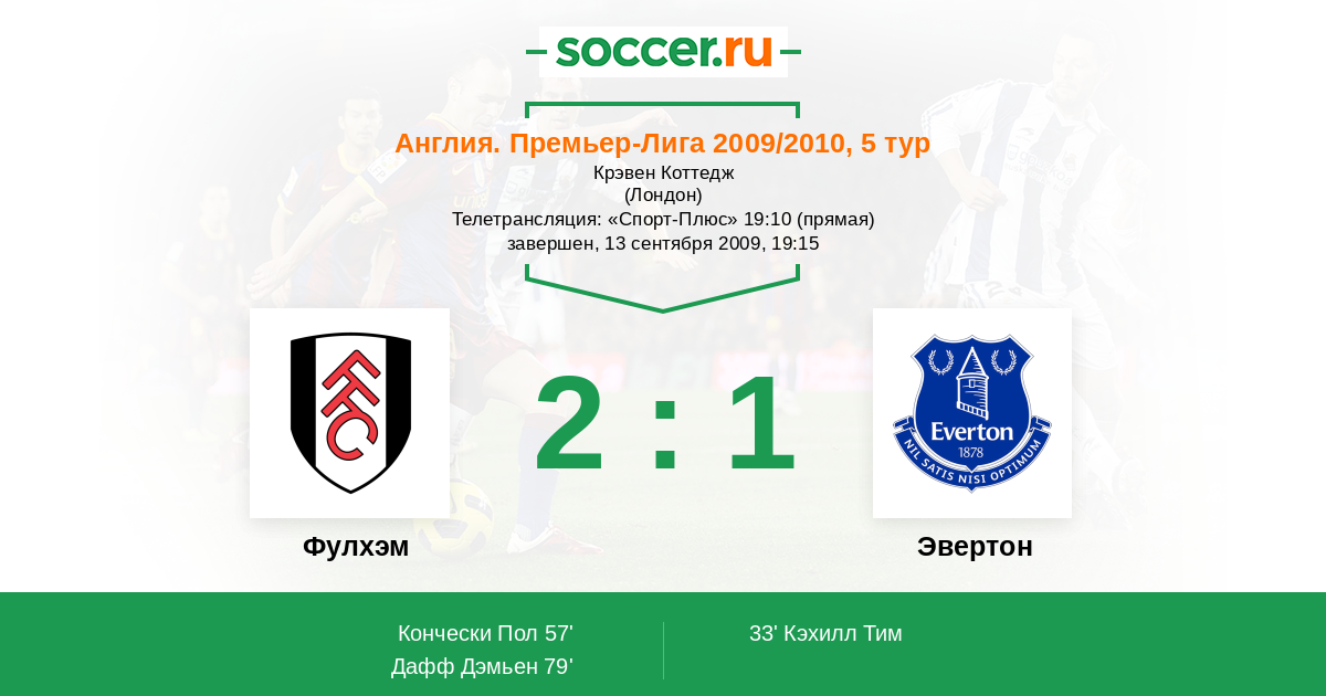 Протокол матча Фулхэм против Эвертон
