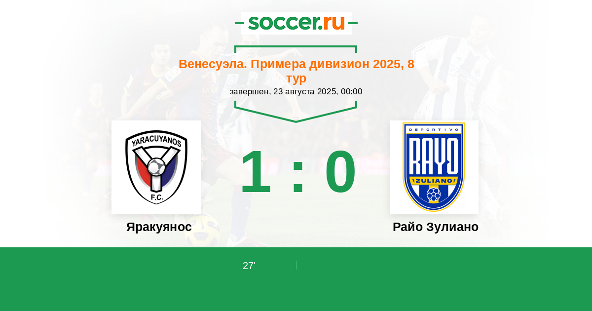 Протокол матча Яракуянос против Райо Зулиано