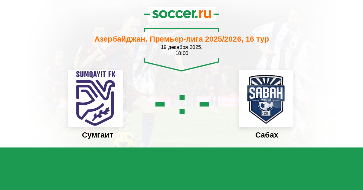 Азербайджан. Премьер-Лига 23.12.2022 Сумгаит Логотип футбольный клуб Сумгаит 0:6 Логотип футбольный клуб Сабах (Баку) Сабах