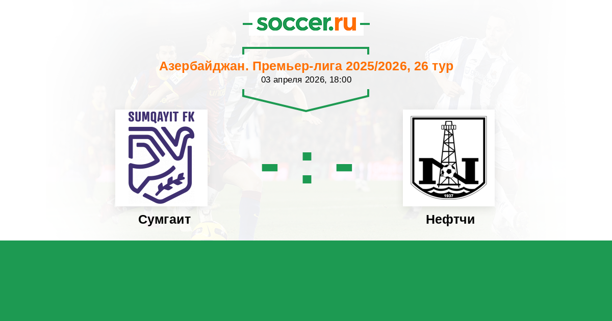 Азербайджан. Премьер-Лига 20.04.2014 Нефтчи Логотип футбольный клуб Нефтчи (Баку) 1:3 Логотип футбольный клуб Сумгаит Сумгаит