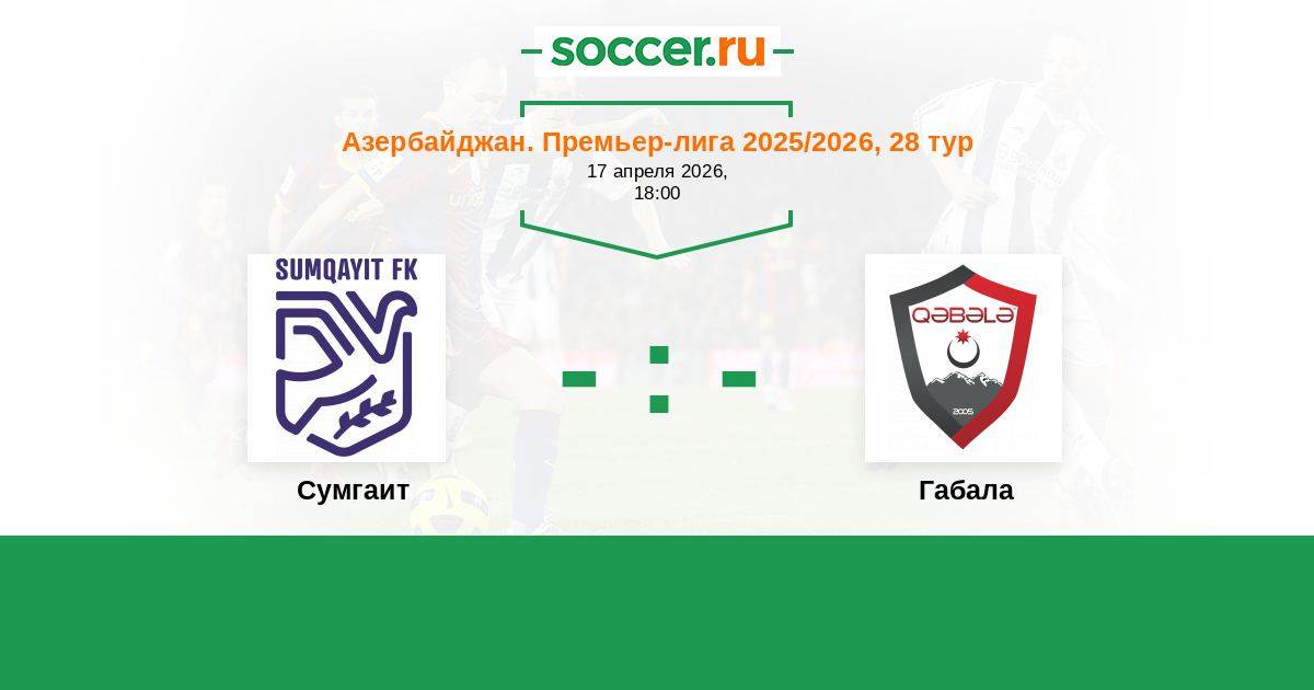 Азербайджан. Премьер-Лига 02.04.2018 Габала Логотип футбольный клуб Габала 1:1 Логотип футбольный клуб Сумгаит Сумгаит