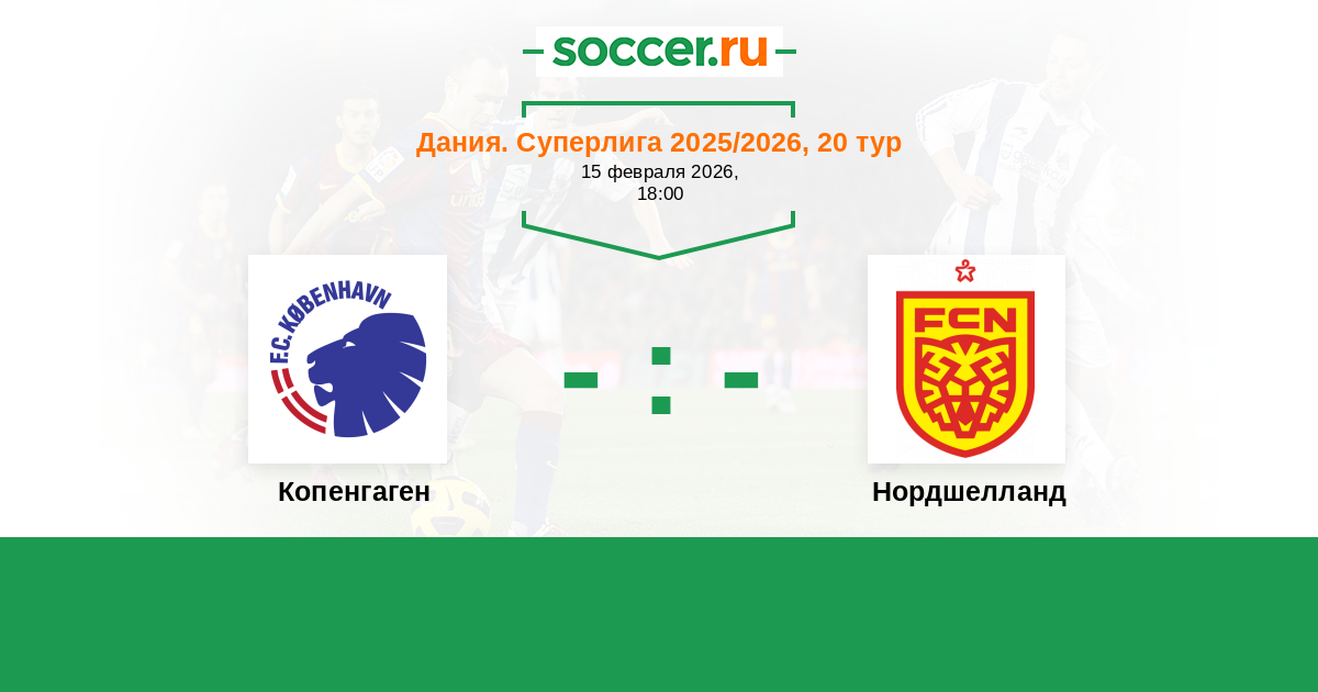 Дания. Суперлига 26.02.2017 Нордшелланд Логотип футбольный клуб Нордшелланд (Фарум) 1:1 Логотип футбольный клуб Копенгаген Копенгаген