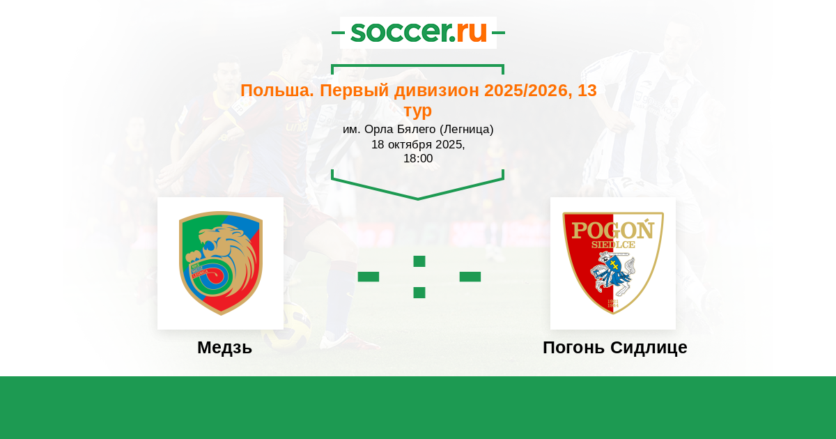 Протокол матча Медзь против Погонь Сидлице