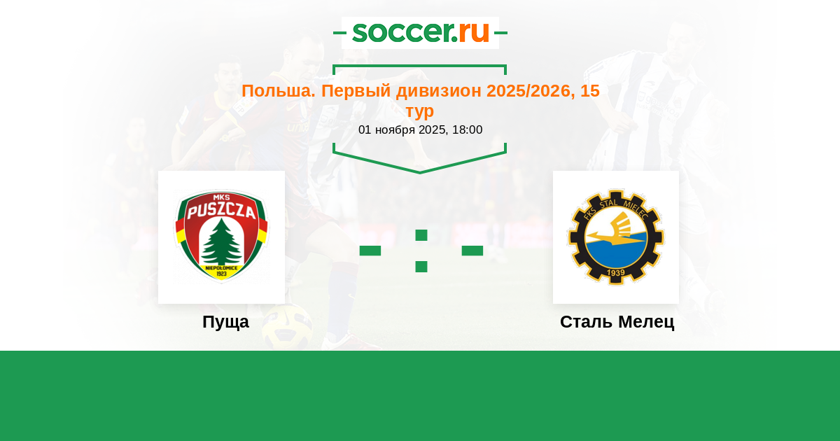 Польша. Первый дивизион 29.07.2018 Пуща Логотип футбольный клуб Пуща (Ньеполомице) 1:0 Логотип футбольный клуб Сталь Мелец Сталь Мелец