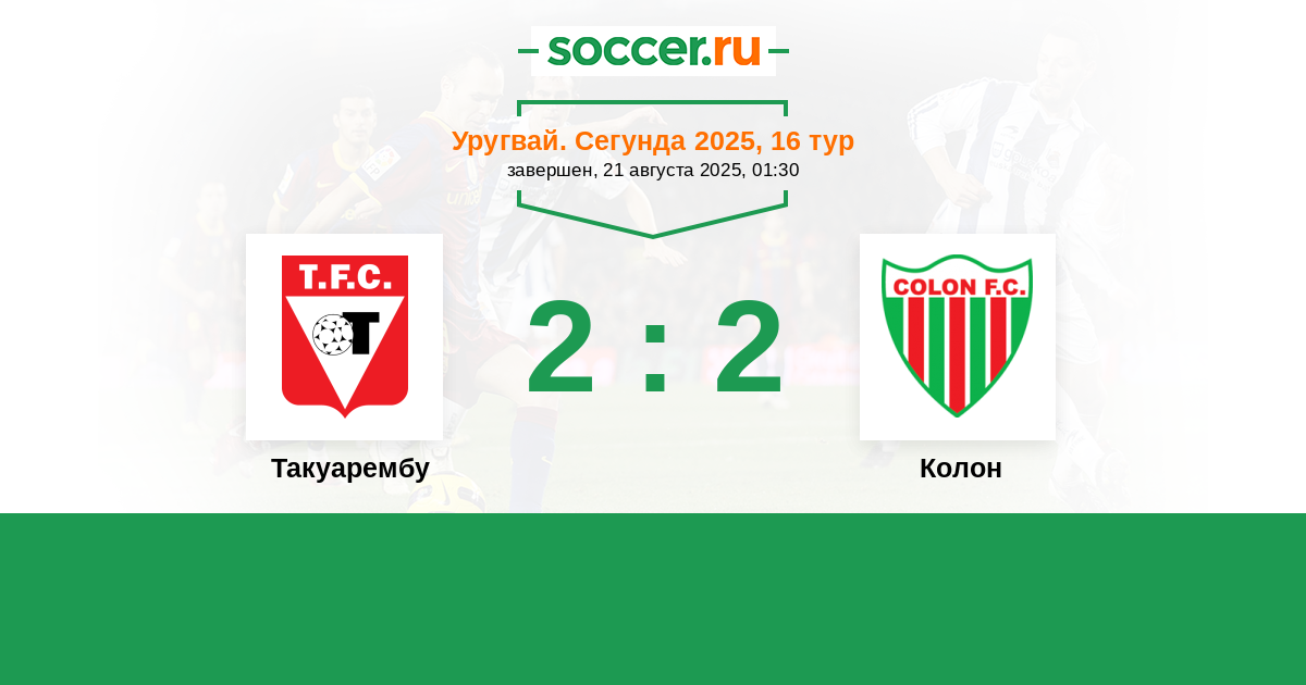 Протокол матча Такуарембу против Колон