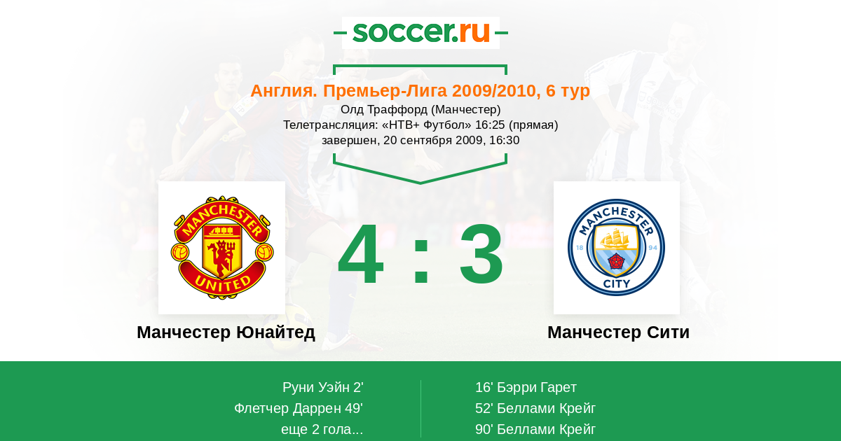 Протокол матча Манчестер Юнайтед против Манчестер Сити