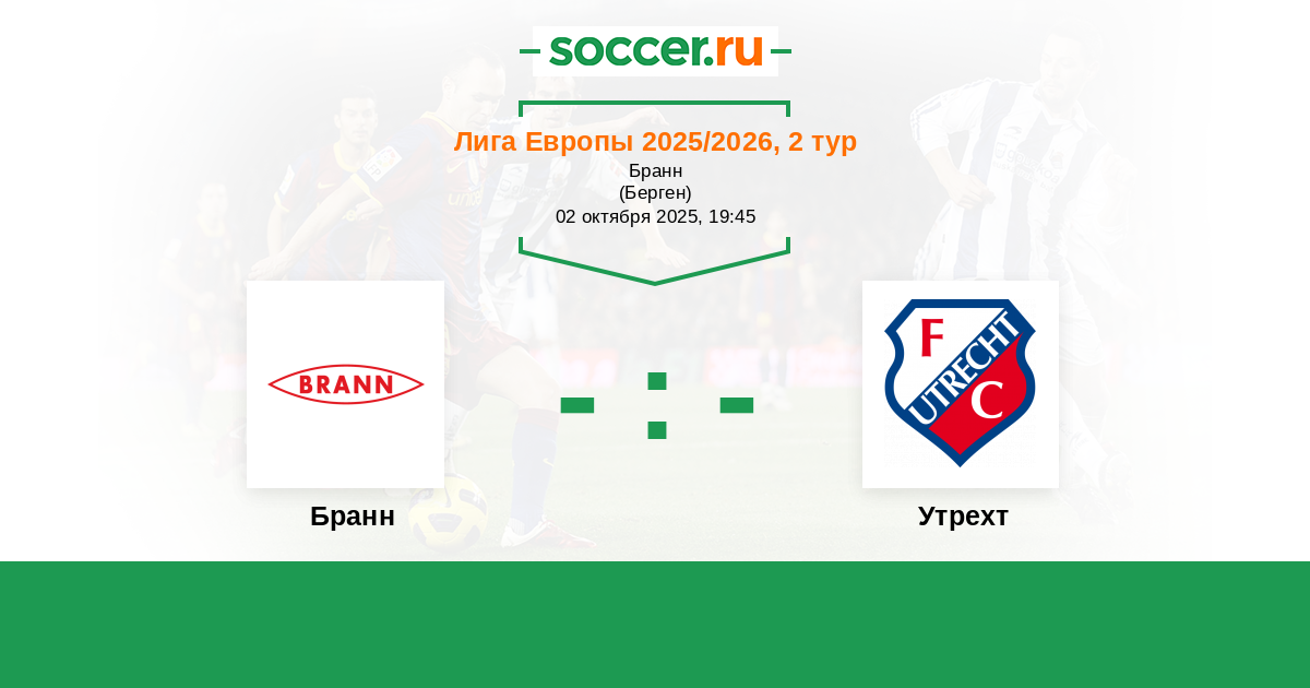 Протокол матча Бранн против Утрехт