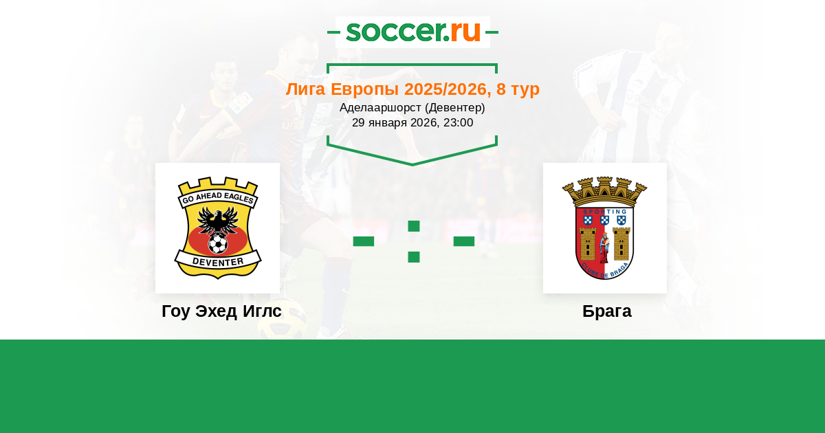 Протокол матча Гоу Эхед Иглс против Брага